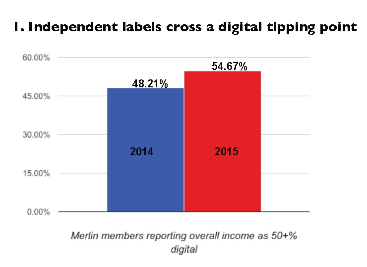 - Independent labels have crossed a digital tipping point. For the first time, more than half of respondents report that income from digital services accounts for over 50% of their overall business revenues. For one in three, digital income accounts for over 75% of their overall revenues.