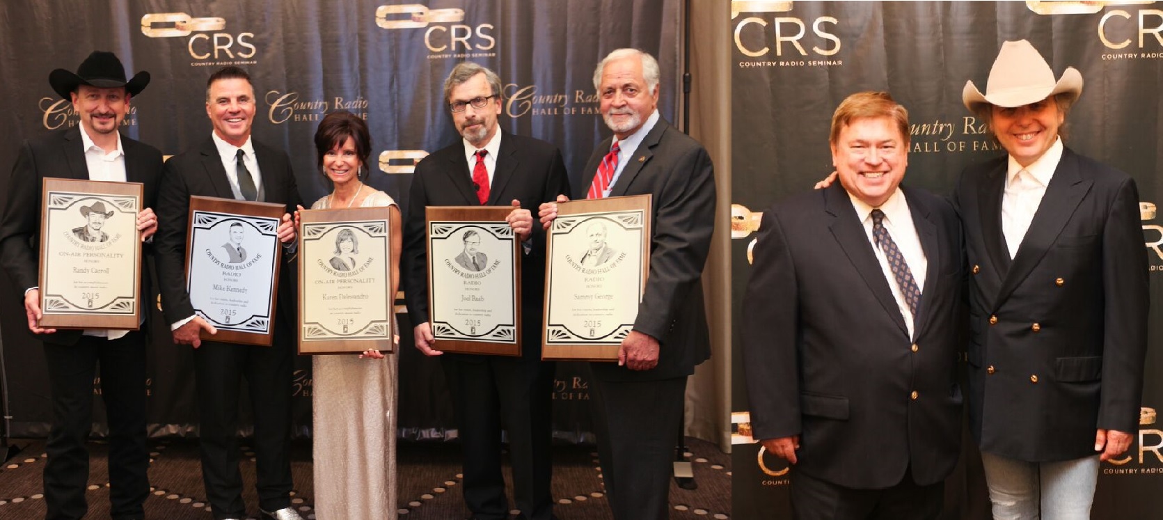 Last NIGHT (6/24), the OMNI HOTEL in NASHVILLE played host to the COUNTRY RADIO HALL OF FAME induction celebration for the Class of 2015 (NET NEWS 2/25). Former WUSY/CHATTANOOGA GM SAMMY GEORGE, longtime programmer and consultant JOEL RAAB, current KBEQ/KANSAS CITY PD/morning personality MIKE KENNEDY, KAJA/SAN ANTONIO morning man RANDY CARROLL, and WMIL/MILWAUKEE personality KAREN DALESSANDRO were honored as the newest members of the HALL OF FAME, while JEFF WALKER and DWIGHT YOAKAM were honored with the CRS PRESIDENT'S AWARD and ARTIST CAREER ACHIEVEMENT AWARD, respectively (NET NEWS 6/2).
