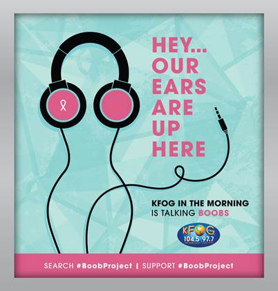 All funds generated from the sale of the song and donations to KFOG’s #BoobProject will go to the BREAST CANCER RESEARCH FOUNDATION, a charity that funds breast cancer research all over the world.
