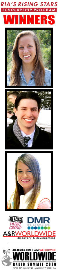 During the opening remarks, at 9a on THURSDAY, APRIL 14th, just before the KEYNOTE SESSION, ALL ACCESS, DMR/INTERACTIVE, and A&R WORLDWIDE will introduce and welcome our first three scholarship winners from the RIA's RISING STARS FOUNDATION, created to honor the memory of ALL ACCESS co-founder RIA DENVER.