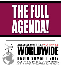 If you've never attended, and you've wanted to -- stop and make your plans now for the seventh annual WORLDWIDE RADIO SUMMIT -- presented by A&R WORLDWIDE and ALLACCESS.COM! WWRS 2017 is returning to the W HOTEL HOLLYWOOD, (where WWRS began in 2010), and is set for MAY 3rd, 4th, 5th, 2017. Registration is $475 and many of your peers are all set to attend.