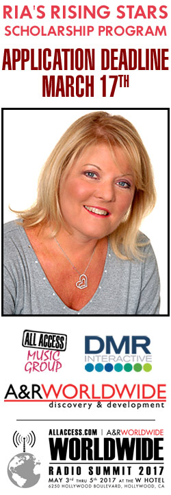 ALL ACCESS, DMR/INTERACTIVE and A&R WORLDWIDE announce that "RIA'S RISING STARS SCHOLARSHIP PROGRAM" is now a 501(c)(3) public charity, formed to honor the memory of ALL ACCESS co-founder RIA DENVER and give deserving broadcast school students the chance to attend WORLDWIDE RADIO SUMMIT 2017 on MAY 3rd, 4th, 5th, at the W HOTEL, HOLLYWOOD.