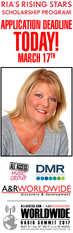 ALL ACCESS, DMR/INTERACTIVE and A&R WORLDWIDE announce that "RIA'S RISING STARS SCHOLARSHIP PROGRAM" is now a 501(c)(3) public charity, formed to honor the memory of ALL ACCESS co-founder RIA DENVER and give deserving broadcast school students the chance to attend WORLDWIDE RADIO SUMMIT 2017 on MAY 3rd, 4th, 5th, at the W HOTEL, HOLLYWOOD.