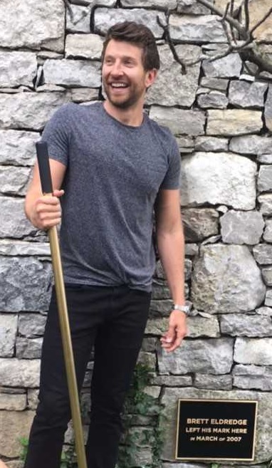 WMN Chairman/CEO JOHN ESPOSITO thought it neccessary to commemorate that now-legendary story with a "#1 plaque" on the side of the WARNER building where ELDREDGE so frequently left his mark, long before signing with the label and leaving his mark in a more musical way. "We thought this story was amazing," ESPOSITO said, according to PEOPLE. "We felt like no only you had to mark your spot, but we had to mark it, as well. You have to unveil it." ELDREDGE then moved aside some fake ivy along the side of the building to reveal a bronze plaque that reads, "BRETT ELDREDGE Left His Mark Here In MARCH Of 2007." The plaque will serve as a wee reminder that dreams can come true if you're a real whiz at singing.