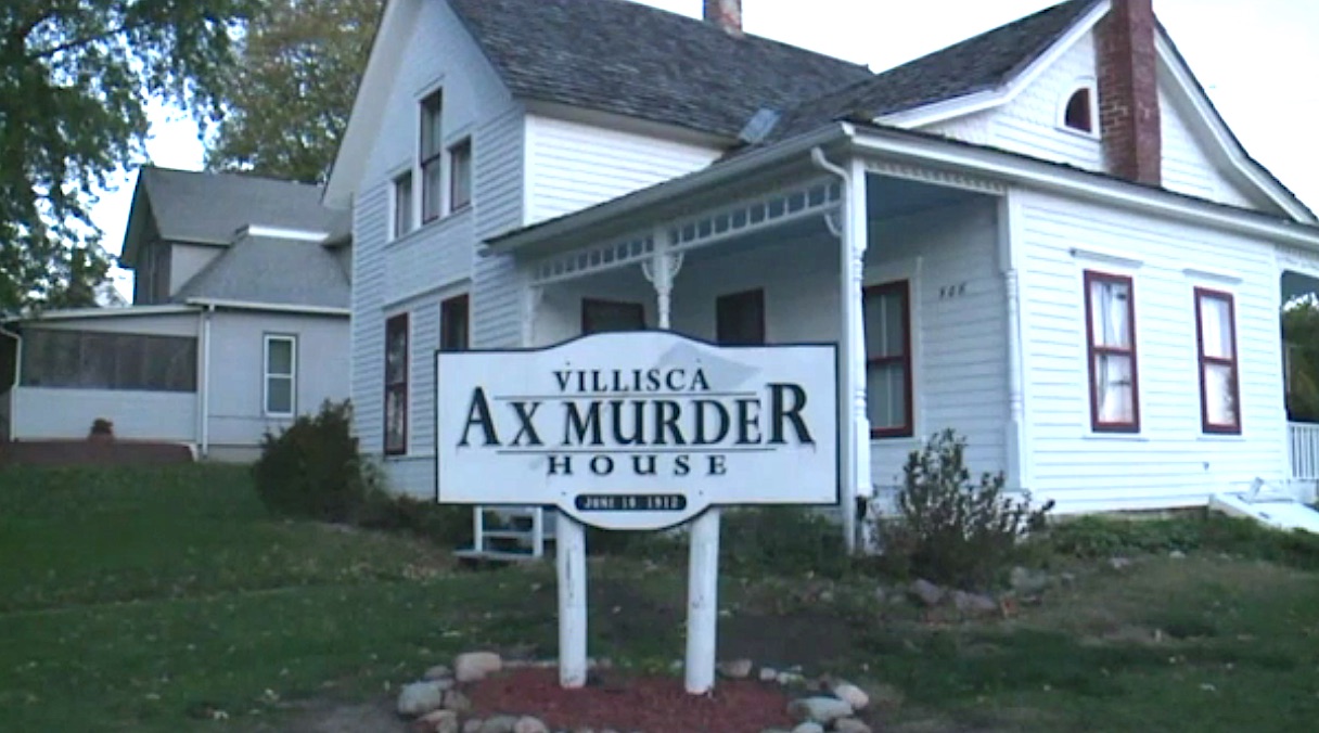 The "VILLISCA Axe Murder House" has been the subject of much "haunted house" speculation, including on paranormal TV shows; the house is the site in which a family was killed in its sleep with an axe 105 years ago in a crime that was never solved.