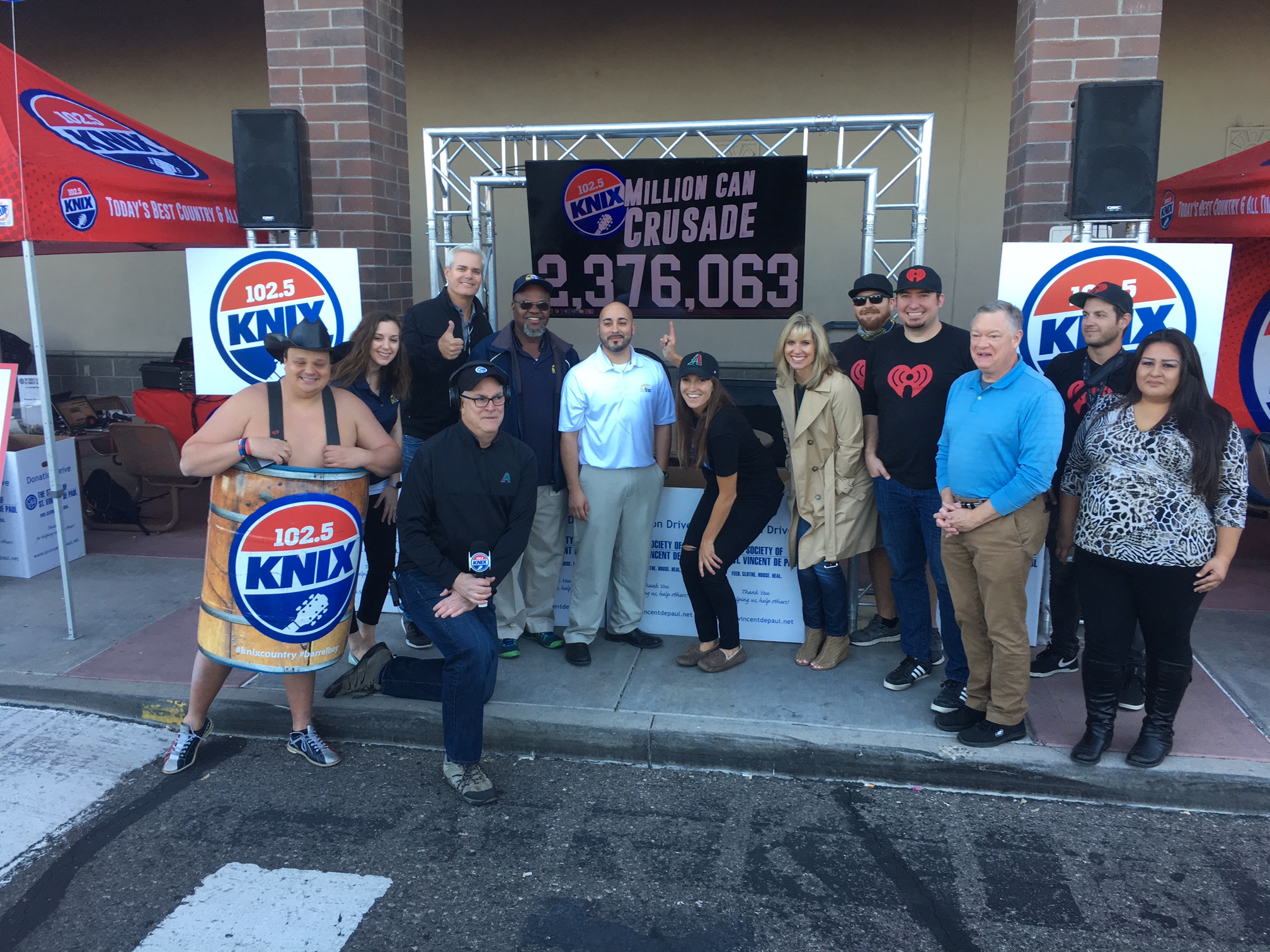 Kudos to iHEARTMEDIA Country KNIX/PHOENIX, which held its "MILLION CAN CRUSADE" recently. KNIX morning teamers "TIM, BEN & BROOKE" led the charge, along with KNIX's "BARREL BOY," in raising over 2.3 million cans for the ST. VINCENT DEPAUL FOOD BANK.