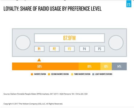 NIELSEN has released more info which looks at audio data the second-quarter 2017 NIELSEN Total Audience Report. The reports found radio listeners spend 58% of their tune-in time with their favorite station.