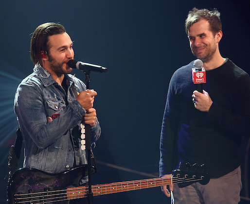Fall Out Boy's Pete Wentz with ALT 98.7 APD/MD/afternoons Harms. (Tommaso Boddi-Getty Images for iHeartMedia)