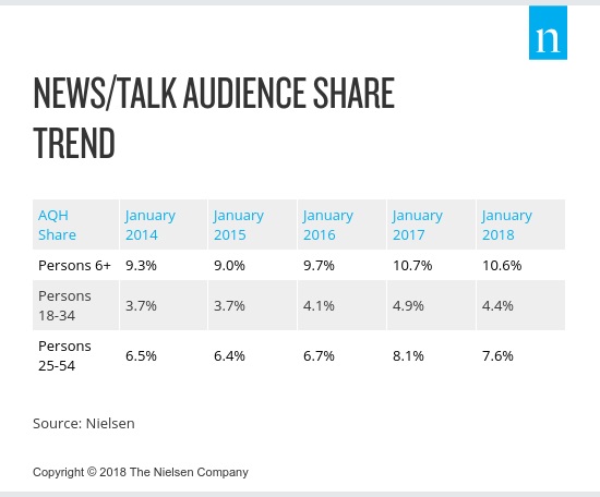 News/Talk also had a strong JANUARY, which is typical for this time of the year as winter weather affects many of the large northeastern markets, while at the same time the news cycle picks back up following the holiday break. But to really judge News/Talk’s performance (which includes both commercial and non-commercial stations in PPM markets) it’s helpful to look beyond just last year’s results when the Presidential election was still a hot topic. Overall, News/Talk continues to see strong audience numbers in 2018, and news consumption continues to be on the rise in AMERICA.