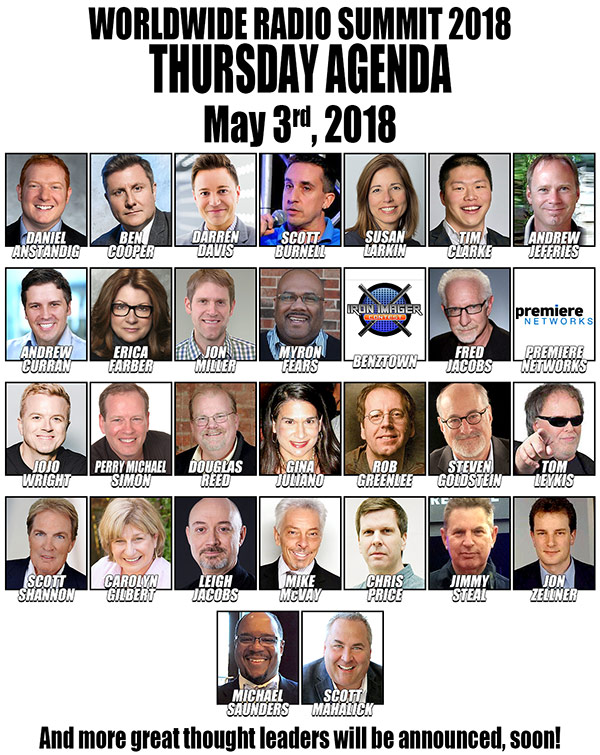 - See the growing WORLDWIDE RADIO SUMMIT 2018 Agenda, here!