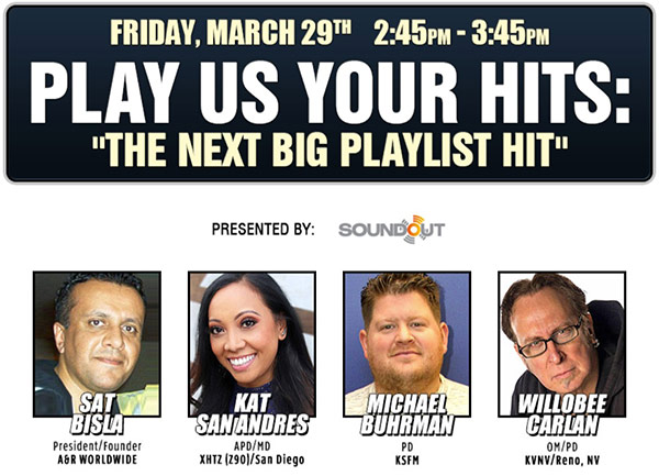 Attendees are geared up with the latest interactive, digital-dial from STRATEGIC SOLUTIONS RESEARCH, INC. As an audience member, you'll use the wireless smart-dial to tell us how you "feel" about the new songs presented. After the audience hears the songs and gives us their emotional responses, we'll take a look on the big screen, at how the group feels about each song and compare them to the panel's opinions. We'll even compare the opinions of Radio people to Label people as well as with research from SOUNDOUT, who will prepare data drawn from their technology for gauging the radio-friendliness of a song. It's a fun, interactive, and a very visual way to see how in sync your opinions are with our panels.