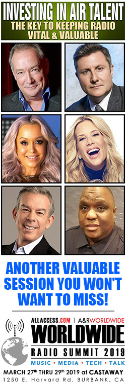 Lock in the dates for WORLDWIDE RADIO SUMMIT 2019 moving to the beautiful and newly-remodeled CASTAWAY in BURBANK, CA -- The Media Capital Of The World -- presented by ALL ACCESS and A&R WORLDWIDE. It's our 9th annual WORLDWIDE RADIO SUMMIT -- check out the agenda -- and you won't want to miss it -– MARCH 27th, 28th, 29th.