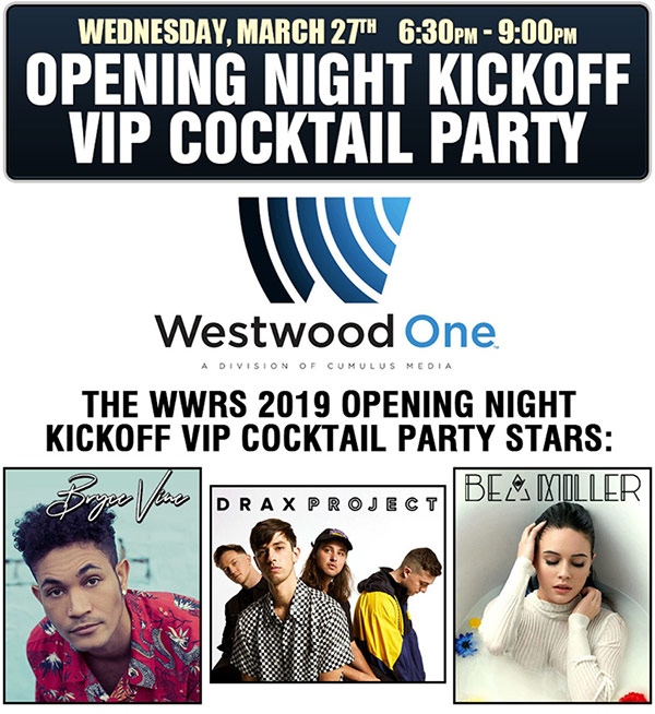 And you know what the first night of WWRS means ... right! A great WWRS 2019 OPENING NIGHT KICKOFF VIP COCKTAIL PARTY on WEDNESDAY, MARCH 27th from 6:30-9:00p at CASTAWAY in BURBANK, CA brought to you by WESTWOOD ONE and hosted by WESTWOOD ONE’s RICK PARTY AND SASHA THE DIVA.!
