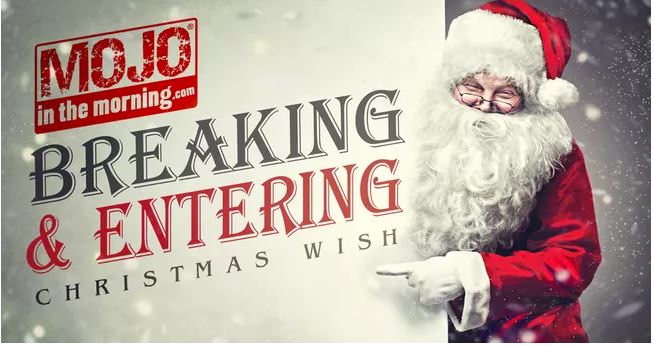 iHEARTMEDIA Top 40 WKQI (CHANNEL 95.5)/DETROIT morning star MOJO has kicked off MOJO's BREAKING AND ENTERING CHRISTMAS WISH again for 2019 in an effort to provide Christmas for those in need -- now in its 16th year.
