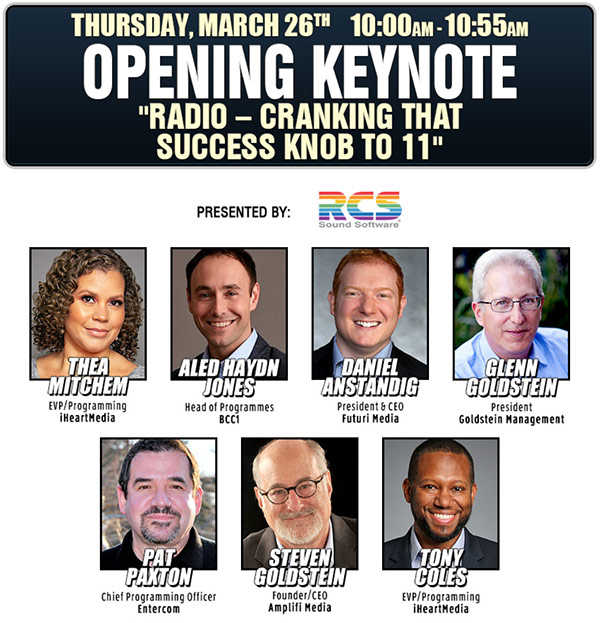 Following the 9a FIRESIDE CHAT with iHEARTMEDIA's BOB PITTMAN is the WWRS 2020 OPENING KEYNOTE SESSION at 10a "RADIO – CRANKING THAT SUCCESS KNOB TO 11" ... and it's packed with talent and brought to you by RCS.