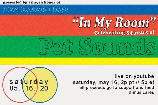 IN MY ROOM: Celebrating 54 Years Of PET SOUNDS is a livestream event that will take place on YOUTUBE MAY 16th at 5p (ET). It's a free show, but donations will be accepted and given to MUSICARES and also SUPPORT + FEED, a COVID-19 relief initiative started by (BILLIE EILISH's mom) MAGGIE BAIRD.