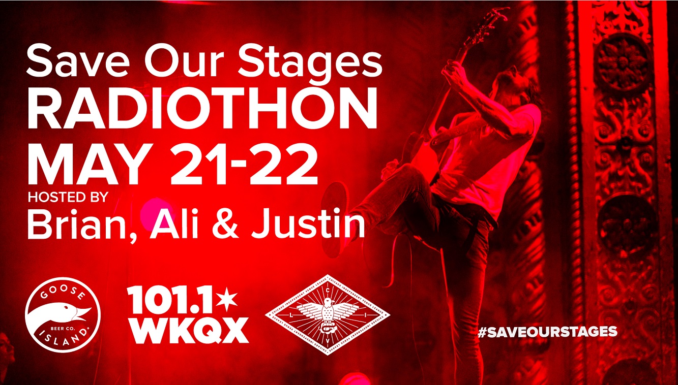 CUMULUS Alternative WKQX (101WKQX)/CHICAGO's BRIAN, ALI & JUSTIN of THE KQX MORNING CREW will be live for 34 hours for "THE SAVE OUR STAGES RADIOTHON" from THURSDAY, MAY 21st at 6a through FRIDAY MAY 22nd at 4p in honor of CHICAGO’s 34 iconic independent music venues affected by the COVID-19 health crisis.