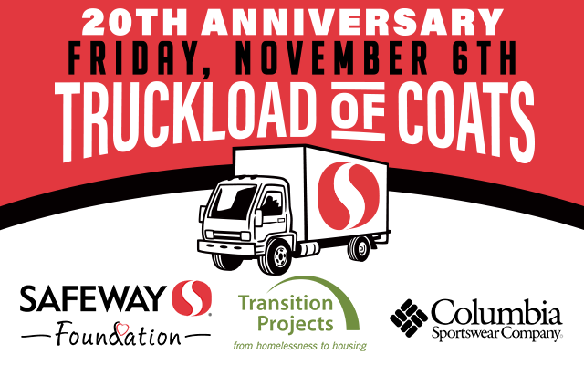 ALPHA MEDIA PORTLAND. OR Triple A KINK, THE SAFEWAY FOUNDATION and TRANSITION PROJECTS are set for the 20th annual TRUCKLOAD OF COATS drive taking place THIS FRIDAY, NOVEMBER 6th at local SAFEWAY stores.