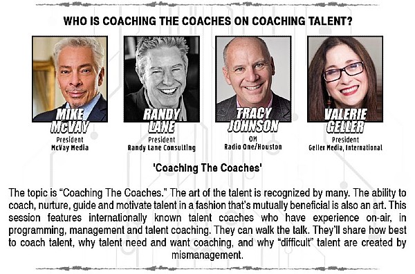 The topic is “Coaching The Coaches.” The art of the talent is recognized by many. The ability to coach, nurture, guide and motivate talent in a fashion that’s mutually beneficial is also an art. This session features internationally known talent coaches who have experience on-air, in programming, management and talent coaching. They can walk the talk. They’ll share how best to coach talent, why talent need and want coaching, and why “difficult” talent are created by mismanagement.