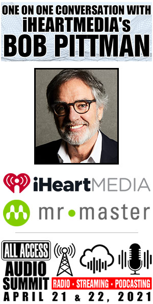 iHEARTMEDIA Chairman/CEO BOB PITTMAN has shaken up the company and the industry with a transformative makeover in direction, resources and now with a new business operating structure splitting the company into three segments. This move alone will generate a lot of interest and questions. PITTMAN is not afraid of a challenge, and he's going to take on your questions, including the hard ones, in a one-on-one conversation with ALL ACCESS Pres./Publisher JOEL DENVER at 8a on APRIL 21st, for 45 minutes. You won't want to miss it. Register, right here.