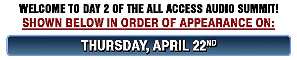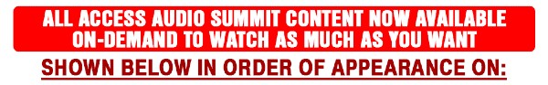 If you missed the live stream broadcast of the THE ALL ACCESS AUDIO SUMMIT, please review the sessions that were presented and then register for THE ALL ACCESS AUDIO SUMMIT to enjoy all of it on-demand at your convenience as many times as you like.