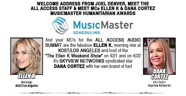 If you are already registered for the ALL ACCESS AUDIO SUMMIT, click here. If you need to register to see the on-demand content, click here and you will have access to all 18 sessions, plus the ALL ACCESS AUDIO SUMMIT WELCOME ADDRESS including the MUSICMASTER HUMANITARIUM AWARDS, and the BENZTOWN 50 AWARDS.