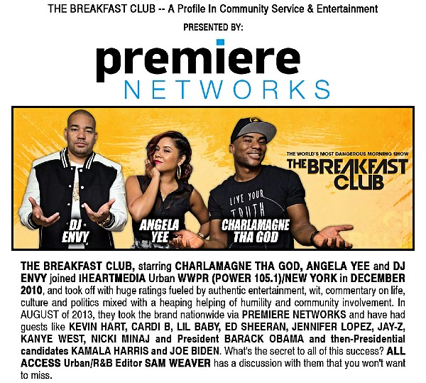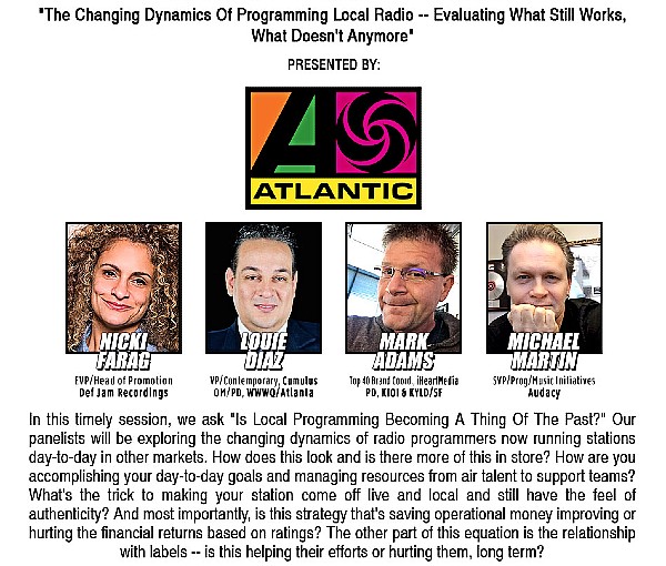 300 ENTERTAINMENT, ATLANTIC RECORDS, BBR MUSIC GROUP, BENZTOWN, CAPITOL RECORDS, CESD, COLEMAN INSIGHTS, CURB RECORDS, FUTURI, HARKER BOS GROUP, HOLLYWOOD RECORDS, INTERSCOPE/GEFFEN/A&M, JACOBS MEDIA, LORI LEWIS MEDIA, MISTERMASTER, MOMENTUM MUSIC RESEARCH, MUSICMASTER, MUSICIANS ON CALL, NUVOODOO, PREMIERE NETWORKS, PROMOSUITE, RCS, and SKYVIEW NETWORKS plus our thanks to our wonderful MC's KOST/LOS ANGELES morning star ELLEN K who also hosts the syndicated ELLEN K MORNING SHOW, and DANA CORTEZ whose syndicated venture THE DANA CORTEZ SHOW is kicking it bigtime from her home base at KKFR (POWER 98.3)/PHOENIX.