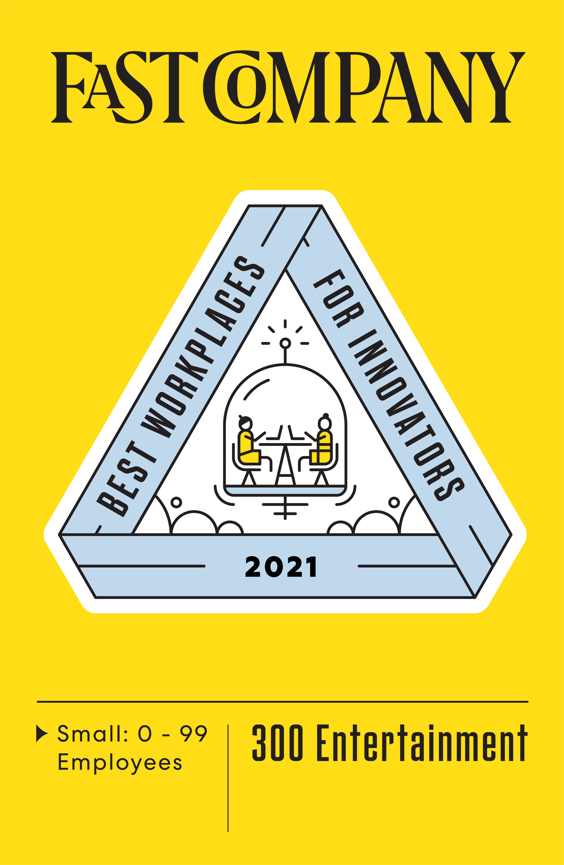 300 ENTERTAINMENT has been named one of FAST COMPANY's "Best Workplaces for Innovators," honoring businesses and organizations that demonstrate a deep commitment to encouraging innovation at all levels. 300 ENTERTAINMENT has been honored in the Small Company-Size Category for an unwavering dedication to its staff throughout the pandemic and an unstoppable year for the company as a whole.