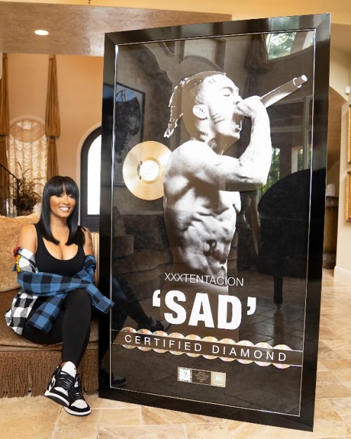 XXTENTACION's single, "SAD!" has received RIAA Diamond Certification signaling 10 million units sold. VIRGIN MUSIC Label And Artist Services Pres. JACQUELINE SATURN made the announcement. XXXTENTACION's mother, CLEO BERNARD, and his manager, SOLOMON SOUNDS accepted the Diamond award on behalf of his estate.