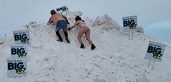 Never ones to pass up a creative way to raise money for their communities, RADIO FM MEDIA Hot AC KLTA (BIG 98.7)/FARGO, ND morning team (PD) JESSE JAMES & AMANDA with GORDO had their interns “KIDNEY STONE PAT” and “LIL’RASPY” ‘race’ up MOUNT BIG 98.7 in 40 degree below zero conditions.