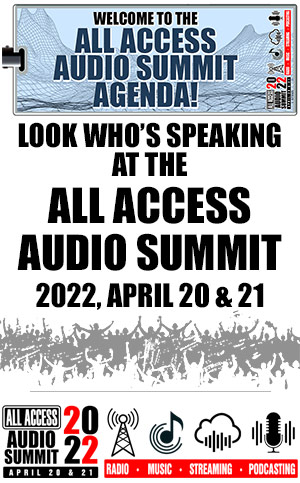 Make plans to join ALL ACCESS for this must-attend virtual event, ALL ACCESS AUDIO SUMMIT 2022, set for 4/20 & 4/21/22, that provides the industry with a platform where we can creatively discuss the many elephants in the room – and make real positive changes.