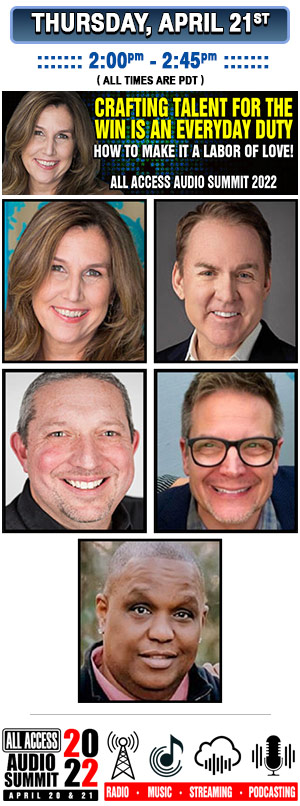 Make plans to join ALL ACCESS for this must-attend virtual event, ALL ACCESS AUDIO SUMMIT 2022, set for 4/20 & 4/21/22, that provides the industry with a platform where we can creatively discuss the many elephants in the room – and make real positive changes.