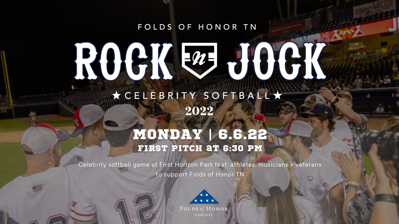 FOLDS OF HONOR FOUNDER/CEO Lt Col. DAN ROONEY said, "The FOLDS OF HONOR TENNESSEE chapter’s second annual 'Rock N' Jock Celebrity Softball Game' is one of our most anticipated events around the country. We are so blessed to have so many artists, athletes and comedians out there to garner support for the military families that FOLDS OF HONOR supports. I guarantee that this is an event that you will not want to miss!”