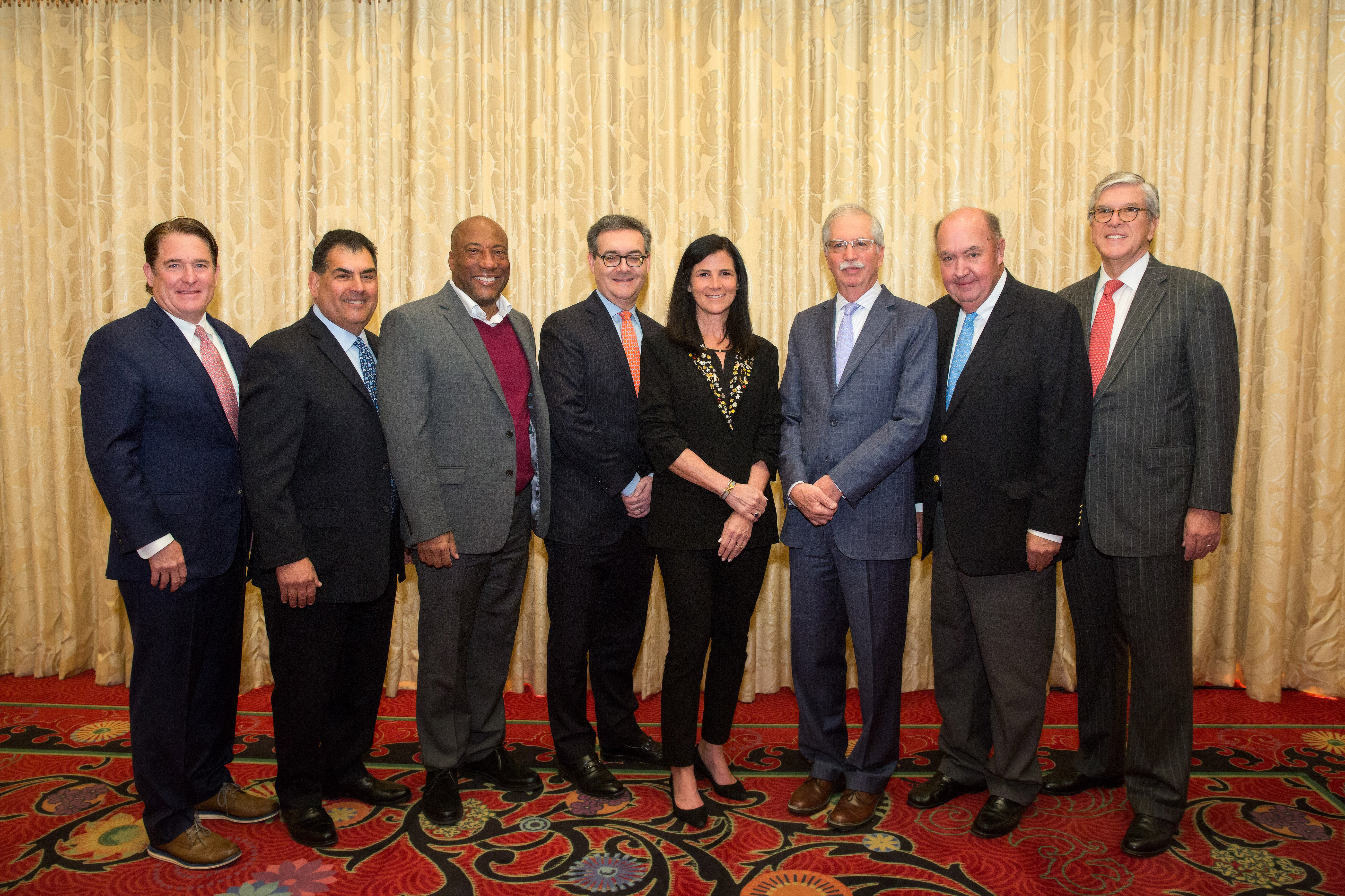 (L-R) TIM MCCARTHY, Co-President/BROADCASTERS FOUNDATION and SCOTT HERMAN, Chairman/BROADCASTERS FOUNDATION, pictured with the honorees, BYRON ALLEN, PIERRE BOUVARD, CHRISTINE TRAVAGLINI, DENNIS WHARTON, RALPH OAKLEY, and GORDON SMITH