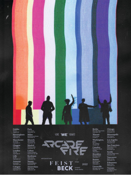 Along with the release of their sixth album WE today (5/6), ARCADE FIRE has announced a World Tour with special North American dates featuring an acoustic perfomance by BECK, and special European dates featuring FEIST. The tour will make stops at NEW ORLEANS’ TOULOUSE THEATRE, NEW YORK’S BOWERY BALLROOM, COACHELLA’S MOJAVE TENT and KOKO in LONDON. The WE tour will launch in DUBLIN on TUESDAY, AUGUST 30th and run through DECEMBER 1st in TORONTO. The North American leg of the WE tour, will kick off OCTOBER 28th in WASHINGTON D.C.