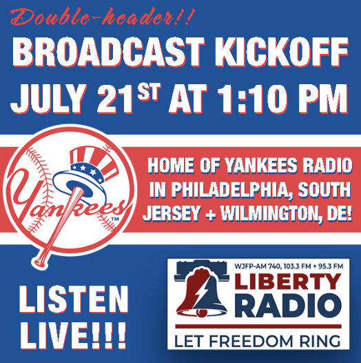 DISRUPTOR RADIO, LLC News-Talk WJFP-A-W237EH-W277DL (LIBERTY RADIO)/CHESTER-PHILADELPHIA has joined the NEW YORK YANKEES radio network. The station will air YANKEES games starting TODAY (7/21) with the YANKEES-ASTROS day-night doubleheader. The station is in the heart of PHILADELPHIA PHILLIES territory; much of the market can receive the AM side of the YANKEES flagship, AUDACY Sports WFAN-A-F/NEW YORK.