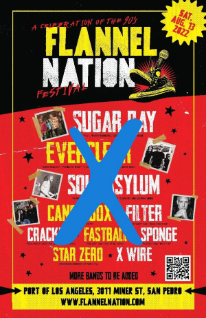 A festival celebrating '90s rock, dubbed FLANNEL NATION, scheduled for this SATURDAY (8/13) at PORT OF LOS ANGELES in SAN PEDRO, CA, has been canceled after several acts, including EVERCLEAR and CANDLEBOX dropped out due to "organizational and logistical issues."