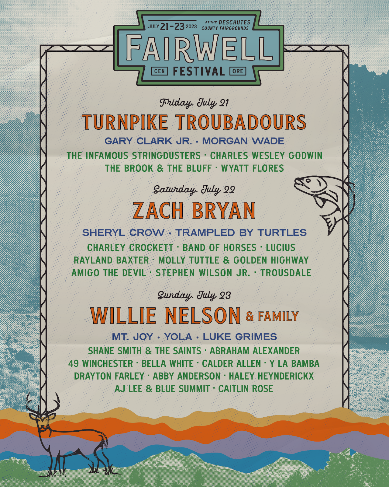 FAIRWELL FESTIVAL has announced its inaugural lineup, bringing ZACH BRYAN, WILLIE NELSON & FAMILY and TURNPIKE TROUBADOURS to the DESCHUTES COUNTY FAIRGROUNDS in the HIGH DESERT of CENTRAL OREGON, JULY 21st-23rd.