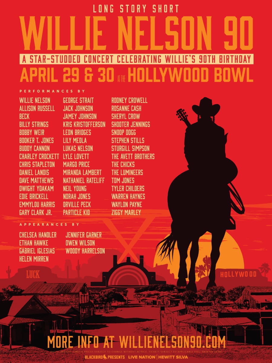 CHELSEA HANDLER, ETHAN HAWKE, GABRIEL IGLESIAS, HELEN MIRREN, JENNIFER GARNER, OWEN WILSON and WOODY HARRELSON have been added as presenters at LONG STORY SHORT: WILLIE NELSON 90, a two-night concert celebrating NELSON's 90th birthday this weekend (4/29-30) at the HOLLYWOOD BOWL in LOS ANGELES.