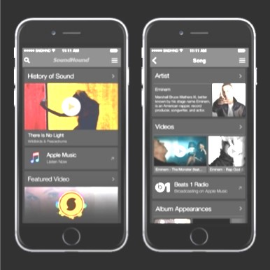 SOUNDHOUND has made updates to its music app that include integration with APPLE MUSIC. SOUNDHOUND now includes “APPLE MUSIC -- Listen Now” options on the homescreen and within song pages, which link to the APPLE MUSIC service. Once connected to the free three-month trial of APPLE MUSIC, users can stream music of artists discovered through SOUNDHOUND’s features including music identification, personalized History, Top Charts, or Music Maps.