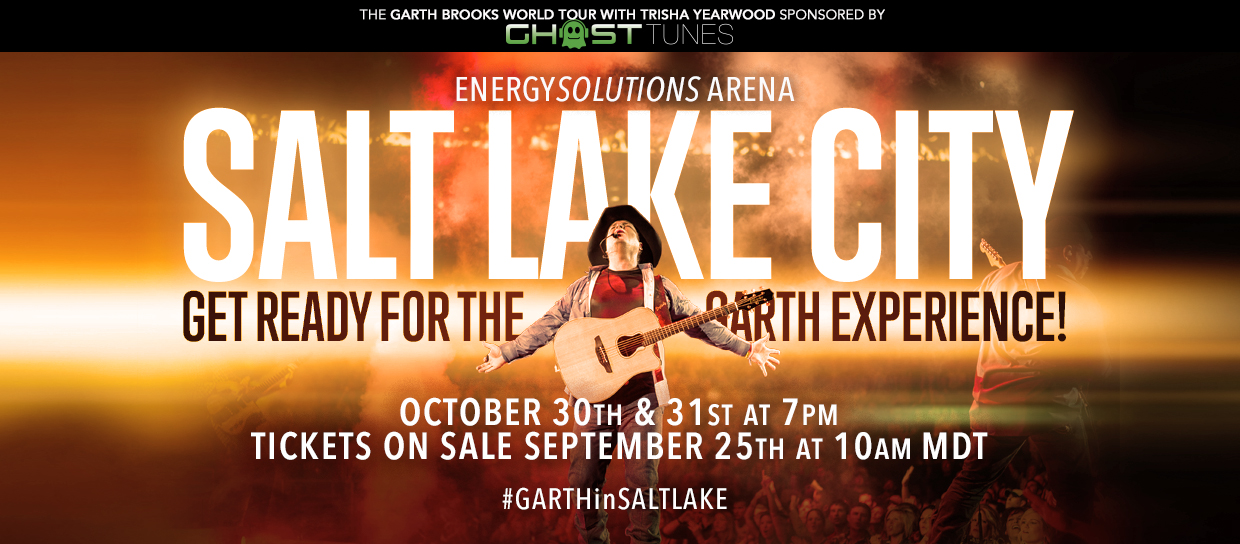 It's no trick and all treats as PEARL RECORDS/RCA NASHVILLE's GARTH BROOKS takes his "WORLD TOUR" to SALT LAKE CITY, UT on FRIDAY, OCTOBER 30th and SATURDAY, OCTOBER 31st. BROOKS has scheduled shows at SALT LAKE's ENERGYSOLUTIONS ARENA for 7p (MT) each evening.