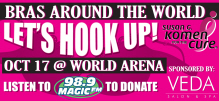 support the fight against breast cancer during OCTOBER's BREAST CANCER AWARENESS MONTH.On OCTOBER 17th, 98.9 MAGIC asks listeners to join station personalities at THE BROADMOORE WORLD ARENA to "Hook Up" their bras around the venue between 10a and 6p (MT).
