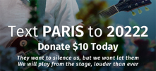 Concert discovery platform BANDSINTOWN has created a program that enables anyone in the U.S. to donate $10 by texting "PARIS" to the 20222 short code. In partnership with FONDATION DE FRANCE, the largest FRENCH charitable organization, 100% of the proceeds will support "GIVE FOR FRANCE," which offers educational programs and citizenship initiatives to the victims and their families.