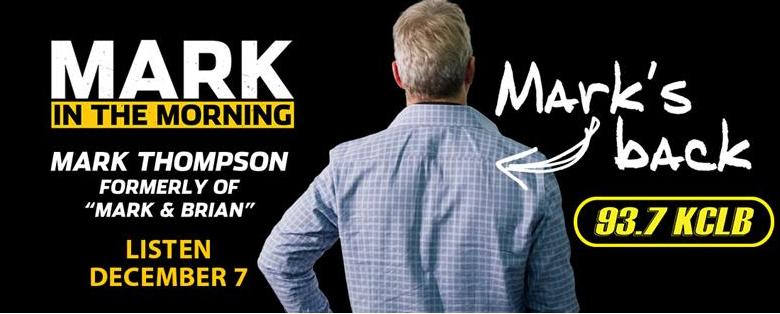 The "MARK IN THE MORNING" show will return to KCLB on MONDAY, DECEMBER 7th.