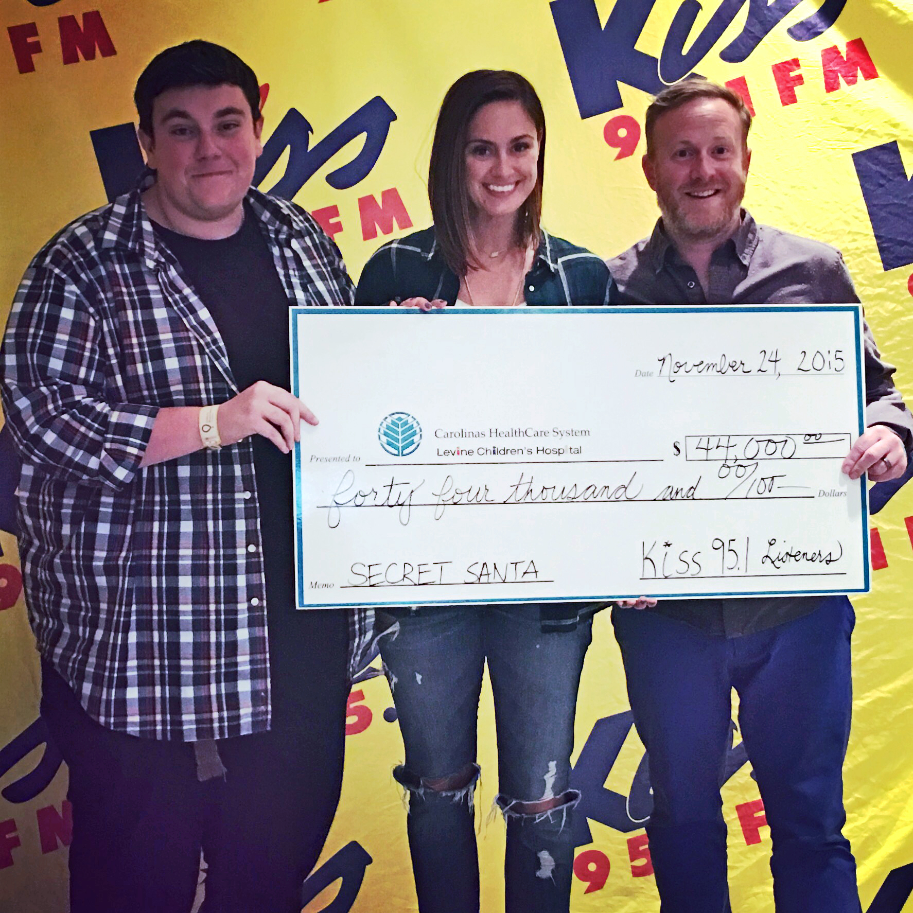 BEASLEY MEDIA Top 40 WNKS (KISS 95.1)/CHARLOTTE morning crew MANEY, ROY and LAUREN hosted the fourth annual "Secret Santa for the KISS Kids" radiothon from the SEACREST Studios at LEVINE CHILDREN’S HOSPITAL.