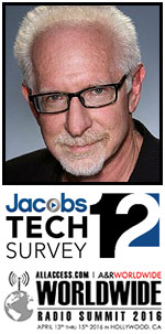 -- JACOBS MEDIA's TECHSURVEY12 is an exlusive first reveal coming to WORLDWIDE RADIO SUMMIT 2016. It's the largest and most important survey in radio for Owners, Management, Programmers, Social/Digital and the Music Business -- JACOBS MEDIA's TECHSURVEY12!