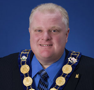 FORD, Mayor of TORONTO in 2010-14 and a City Councilor from Ward 2 of ETOBICOKE NORTH before and after his tenure as Mayor, hosted a weekly radio show, "THE CITY," with his brother, City Councilor DOUG FORD, on BELL MEDIA (formerly ASTRAL MEDIA) News-Talk CFRB-A/TORONTO in 2012-13. His political career included several scandals and drug incidents, including a video depicting him smoking crack, which he admitted to doing after initial denials, and, ultimately, the stripping of his mayoral powers by the Council. Nevertheless, he was popular with a large portion of TORONTO voters, winning a Council seat even after the scandals drove him from the Mayor's office.
