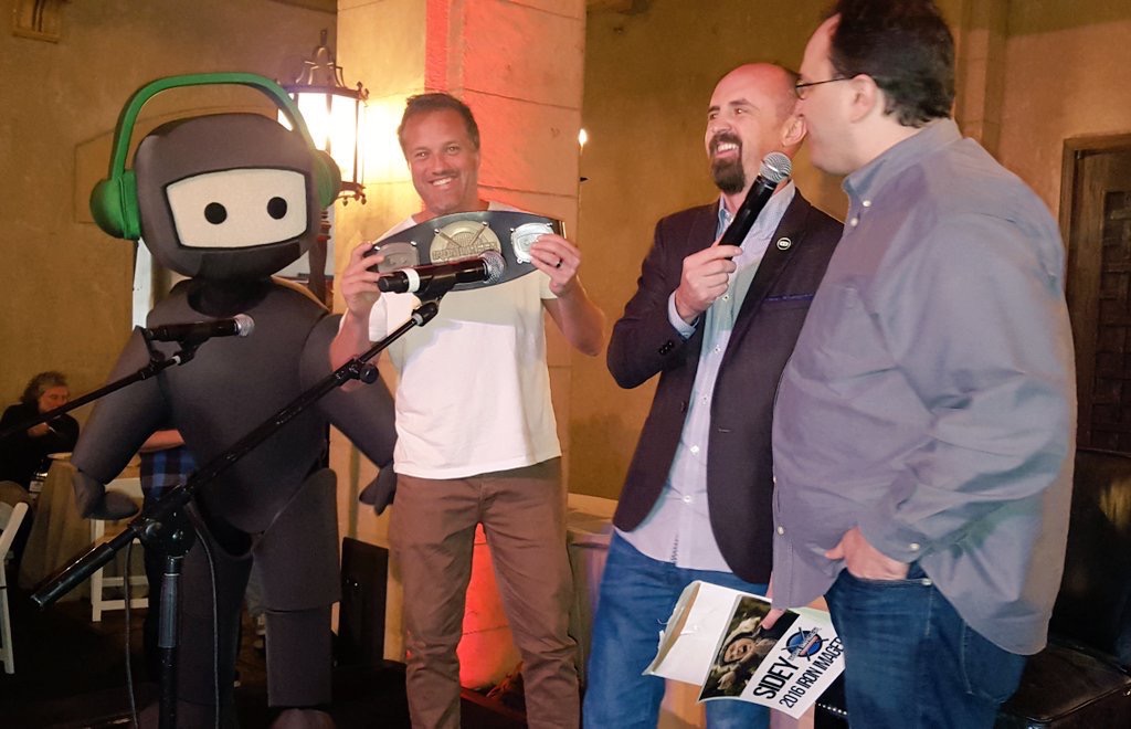 Iron Imager is the first and only competition of its kind. BENZTOWN Dir./Programming and Imaging JUSTIN CASE, awarded the championship belt to ANDERSEN at the WESTWOOD ONE Awards Luncheon.