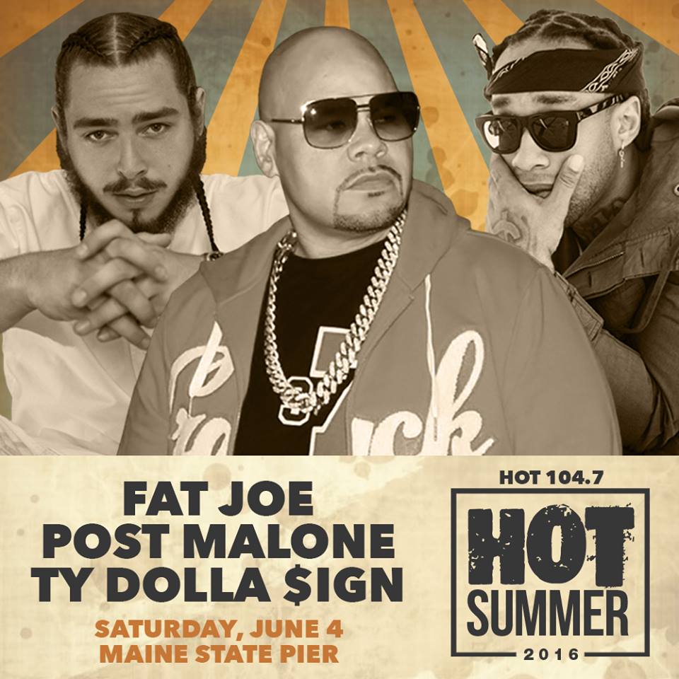 MAINESTREAM Top 40/Rhythmic WHTP (HOT 104.7)/PORTLAND, ME has announced their HOT SUMMER 2016. The JUNE 4th concert at the MAINE STATE PIER in downtown PORTLAND features FAT JOE, POST MALONE and TY DOLLA $IGN.