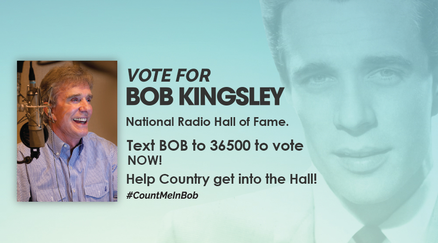 Voting for the NATIONAL RADIO HALL OF FAME opened MONDAY (6/20) at MIDNIGHT and will continue through FRIDAY, JUNE 30th. The Country community is putting out the call to vote for BOB KINGSLEY in the Music Format On-Air Personality category (NET NEWS 5/24) with the #CountMeInBob FACEBOOK and TWITTER campaign.